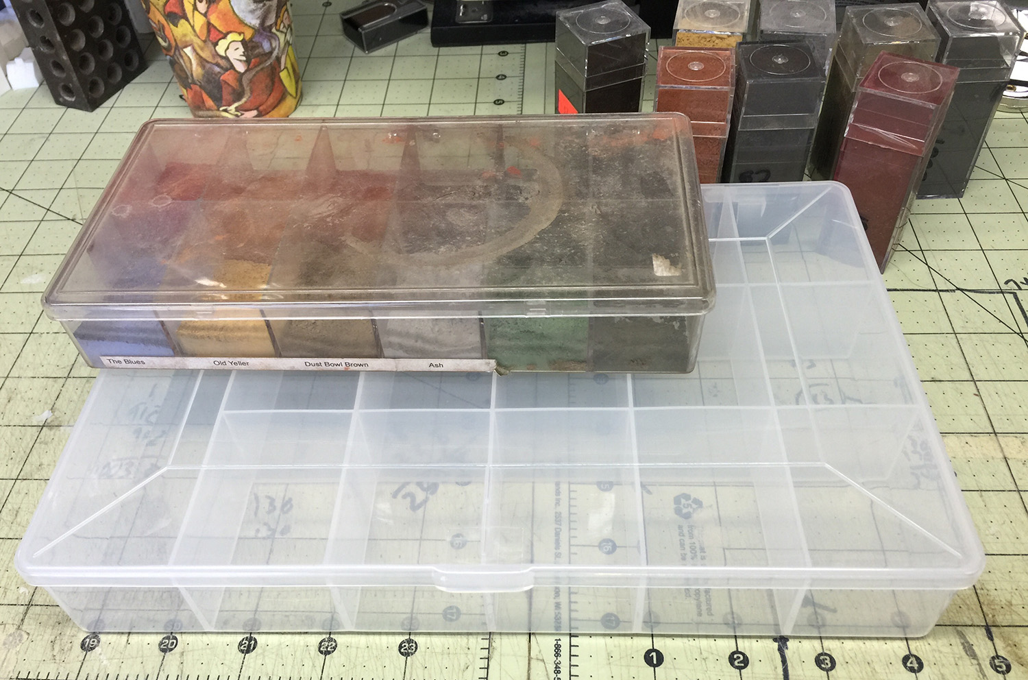 Today I graduated from the little tray my weathering powders were in to a new one that I bought on Amazon. This new bigger one will finally allow me to use the powders that have been sitting on my shelf not being used for over a year. Here is a link to the new organizer tray thingy I just bought.