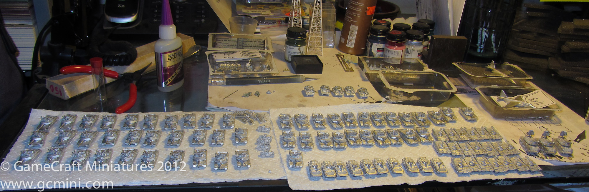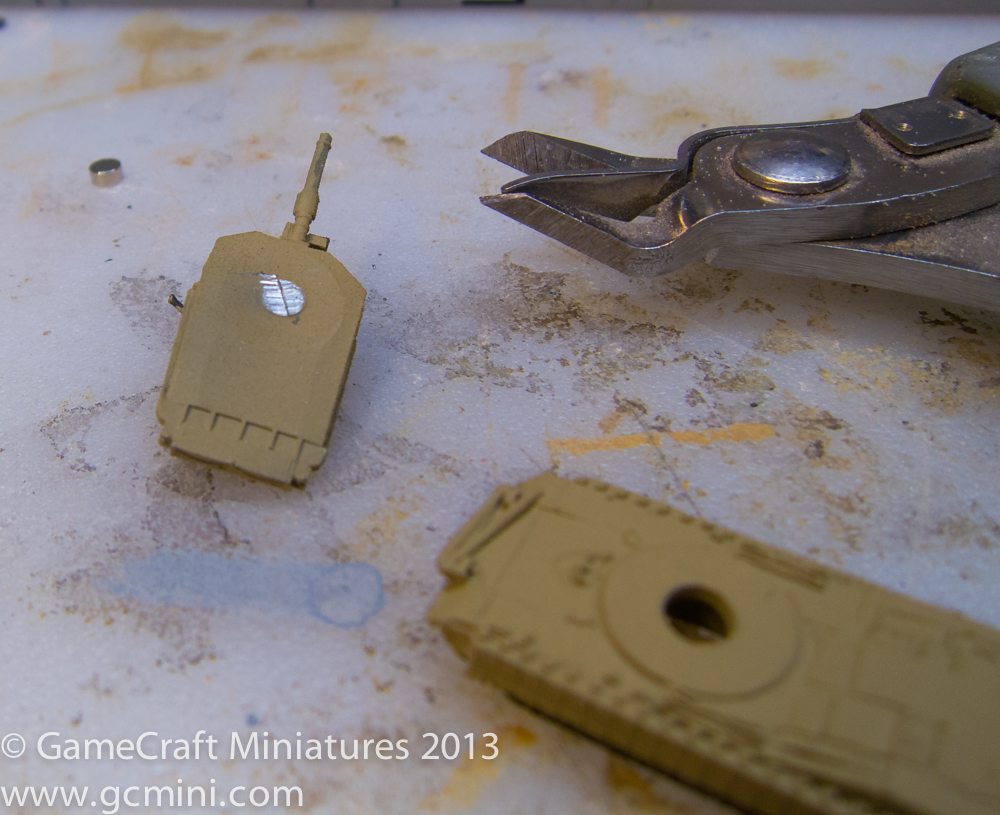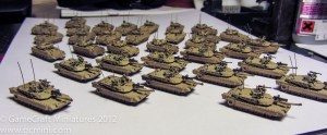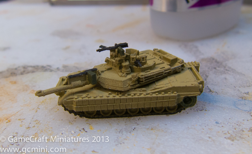In this photo I have just finished putting on the three colors and now I’m ready to paint the tracks and do some weathering and a wash.