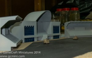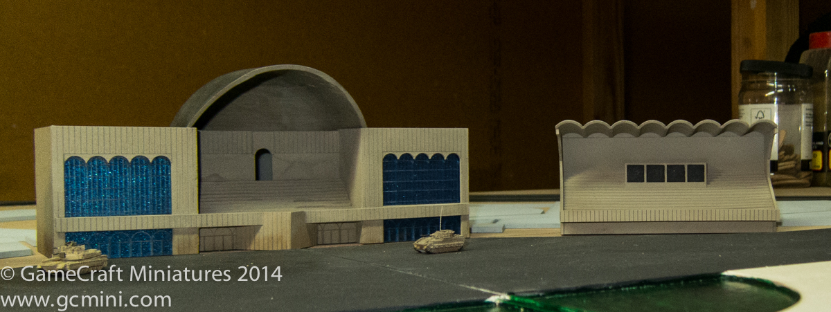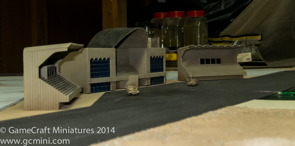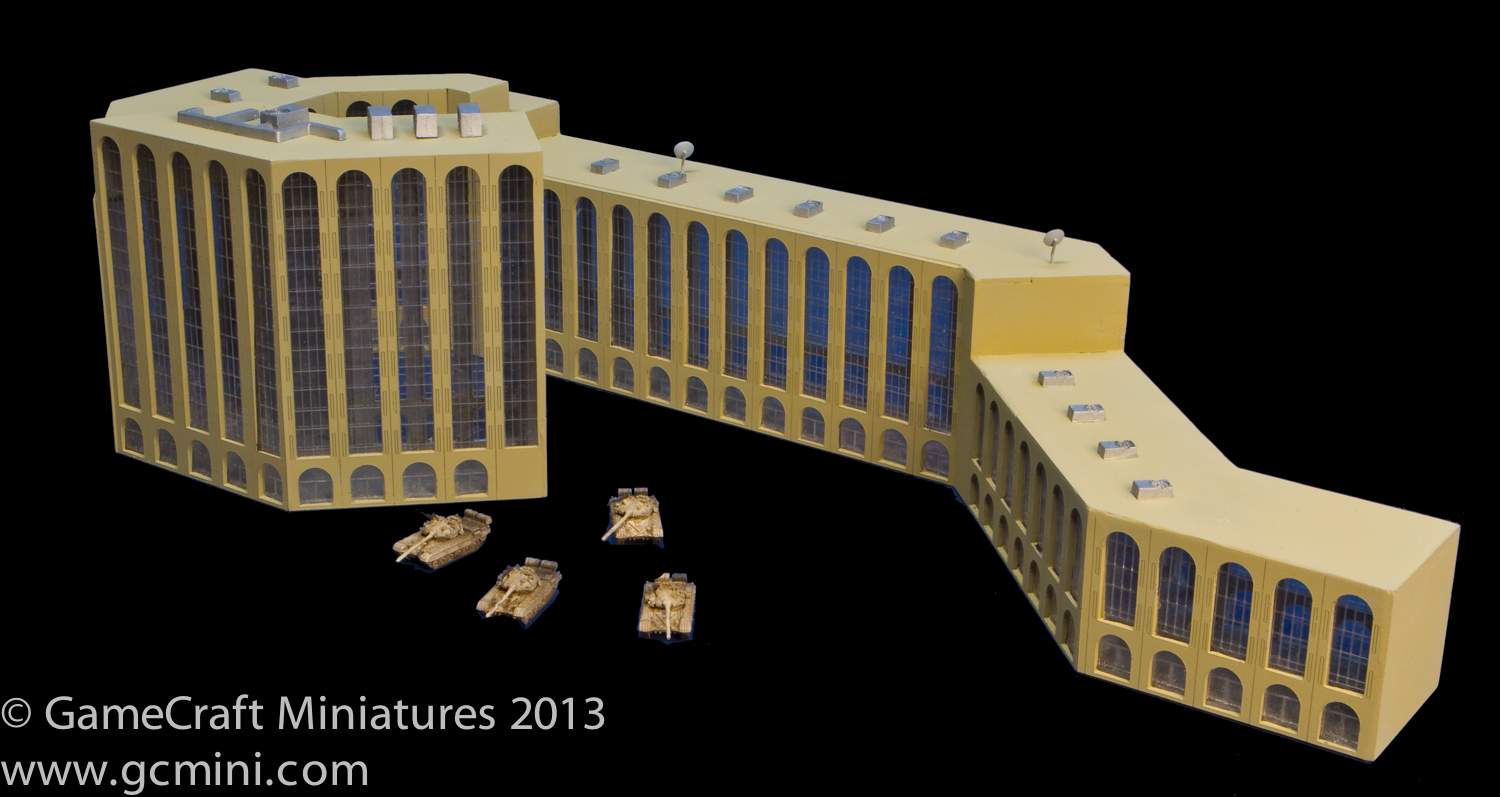 The first photo shows the area being considered, shown in 4 20″ x 20″ boards. The next two show my existing Iraqi MoJ building model.