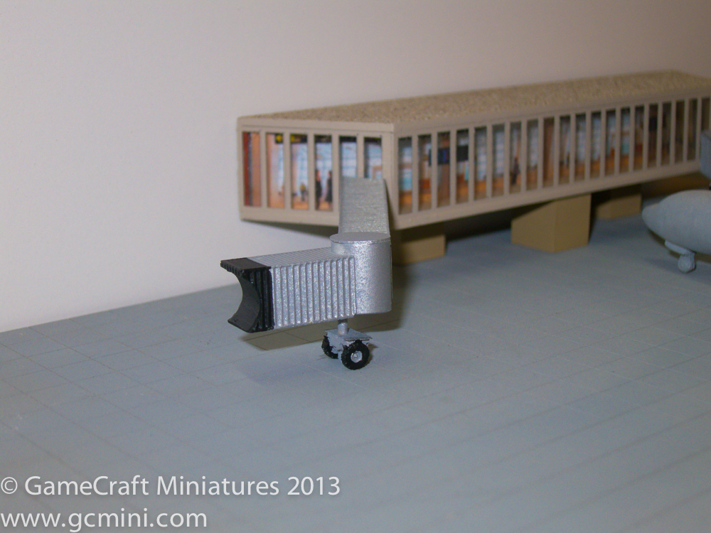 Made 4 jetways using GameCraft 40′ and 20′ 285th scale containers and some 3/8″ Evergreen Styrene tubing..