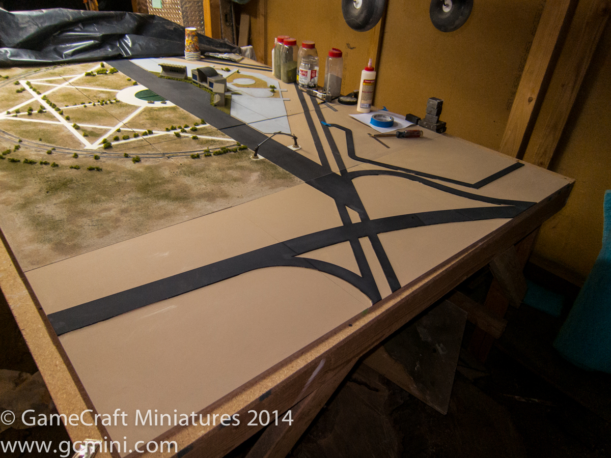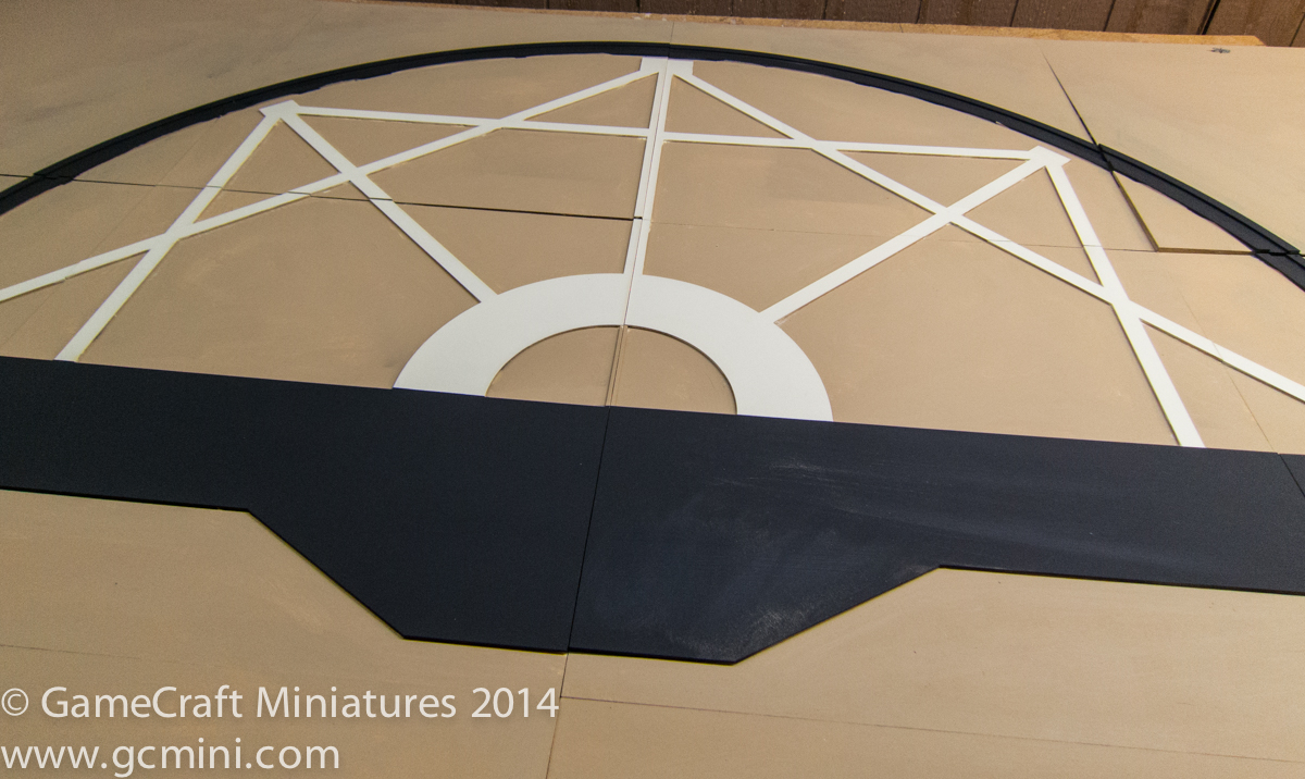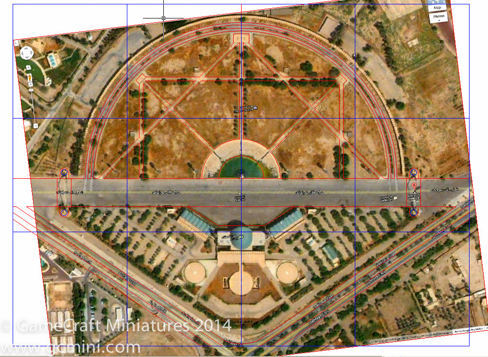 Here is the beginnings of my latest project, the Baghdad Parade Grounds in 1/285th scale. I’ve been working on the design for this set of game boards for quite a while,,, this is actually why I originally created the “Crossed Swords” miniature that GameCraft sells.