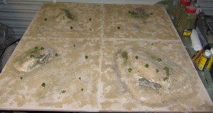 Tonight I started work on 4 more Middle East boards. I’m making these as generic Middle East boards that can be used for several regions. I know that some areas in the Middle East are just sand forever and others are hilly or even mountainous, so I’m trying to do something that is desert with a little terrain to break things up a bit. After all, modern MBTs facing off at 3000 meters across flat sand can be a little boring. …. so a little artistic license is being taken with my terrain boards.