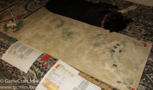 Spent some time tonight in the spare bedroom (AKA, the office, AKA the doggies room) doing some playtesting of my TAC II data and refreshing my old brain on the mechanics of TacForce.