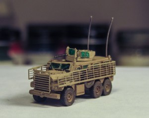 EOD Cougar Posted on July 5, 2012 by Allen Reply Inspired by the vehicles on the TV show “Bomb Patrol Afghanistan”. Just a standard GHQ Cougar 6×6 (#N526) with some of the LAV Slat Armor (#N505)